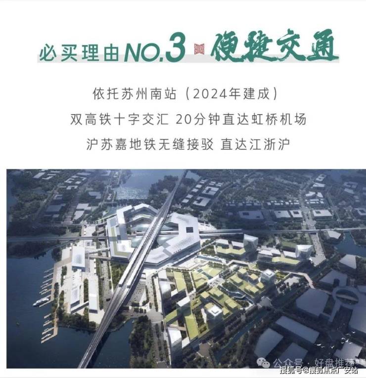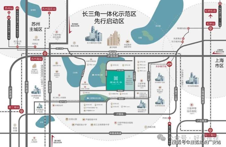 苏州南站(汾湖站)位于长三角一体化先启区——汾湖,沪苏湖铁路、通苏嘉甬城际高铁于此呈“十字”交汇,其中沪苏湖铁路由上海虹桥枢纽引出,途经上海松江、苏州吴江,至浙江湖州站,通车后将实现由汾湖8分钟到松江,20分钟到达上海虹桥枢纽,将汾湖与上海更紧密的联系在一起。