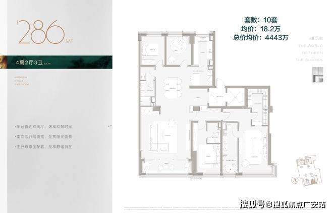 482㎡,3号楼东边套,均价18.1万,基本属于5房5卫,从这里开始,4个卧室全部套房设计,自带卫生间。