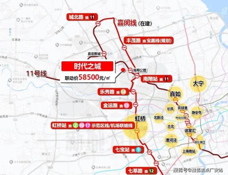 项目地处南翔,紧邻11号线陈翔公路站,嘉闵线(在建)4站直达虹桥枢纽,串联静安寺、徐家汇等核心商圈。