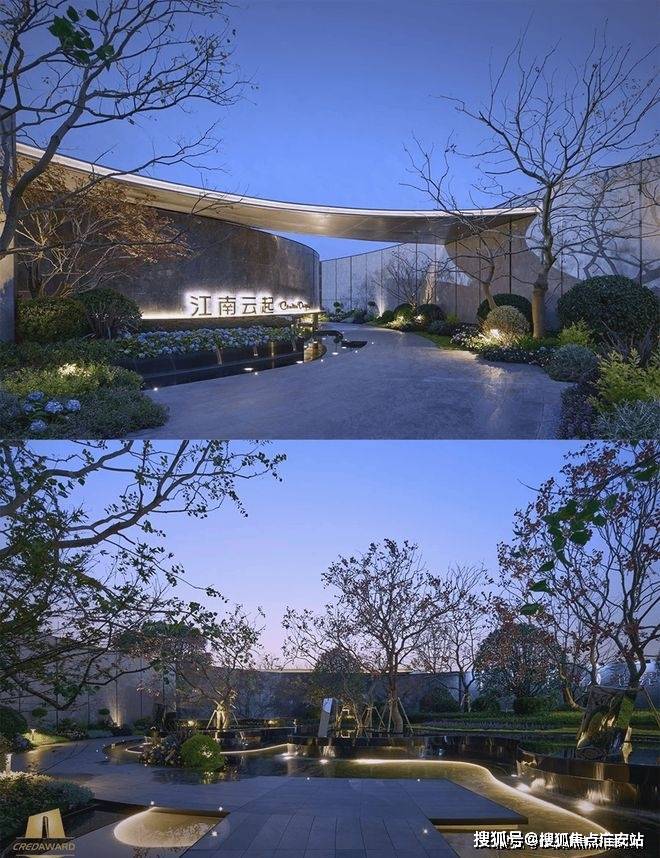 外立面采用“粉墙黛瓦+金属线条”新苏式风格,车库星空顶设计