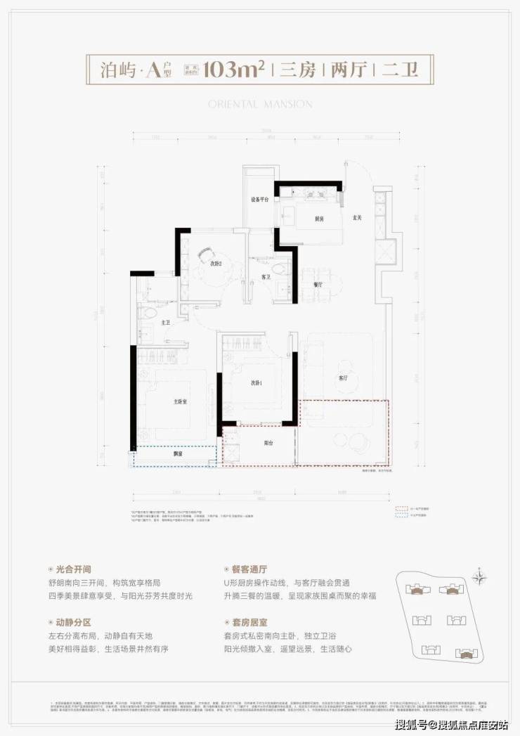 南向三开间朝南,约9.8米大面宽,约7米阔绰阳台,餐客厅贯通,并连接阳台,百变待客空间;套房式主卧,南联阔景飘窗,栖居更温馨舒适。