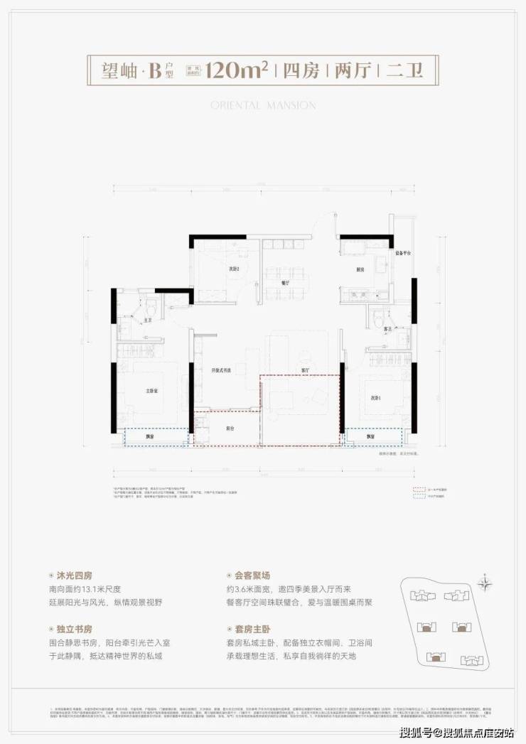 建面约120方4房2卫,爆款全能舒适四房