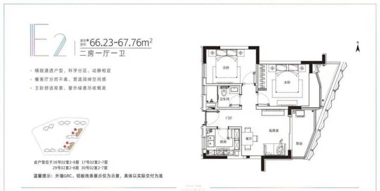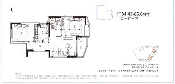建面约78-91.22平米的小户型,两房两厅一卫的格局,非常适合年轻刚需家庭上车。