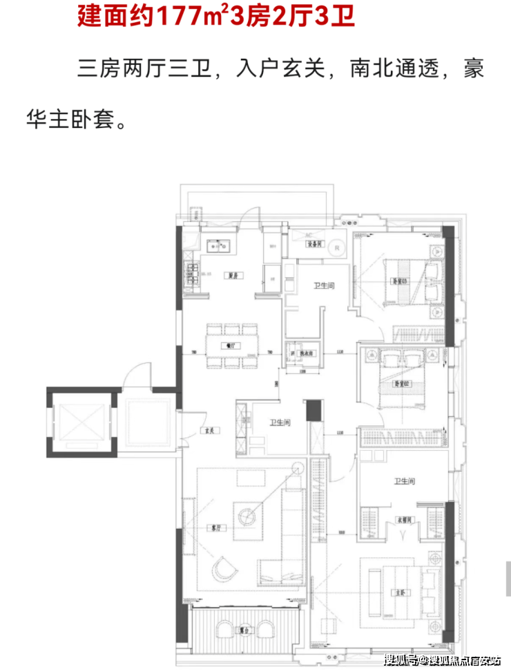 建面约166-213㎡三房(共103套):方正通透,南向四开间采光,LDK一体化设计(客厅、餐厅、厨房贯通),配备中西双厨(中厨+西式岛台),满足三代同堂的舒适需求与社交宴请的体面。