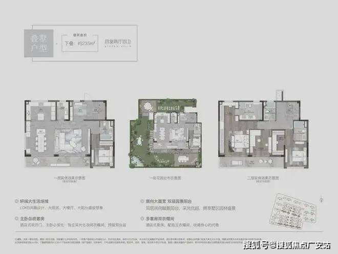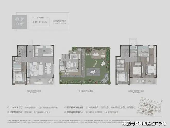 叠墅创新设计:下叠配备南北双花园(约100㎡),上叠带双层露台,全封闭精装楼梯间