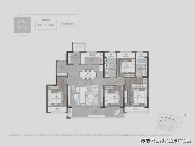 4开间朝南:南向3间卧室+大横厅实现4开间朝南,有更多的空间和采光条件为多个场景的生活确定条件。