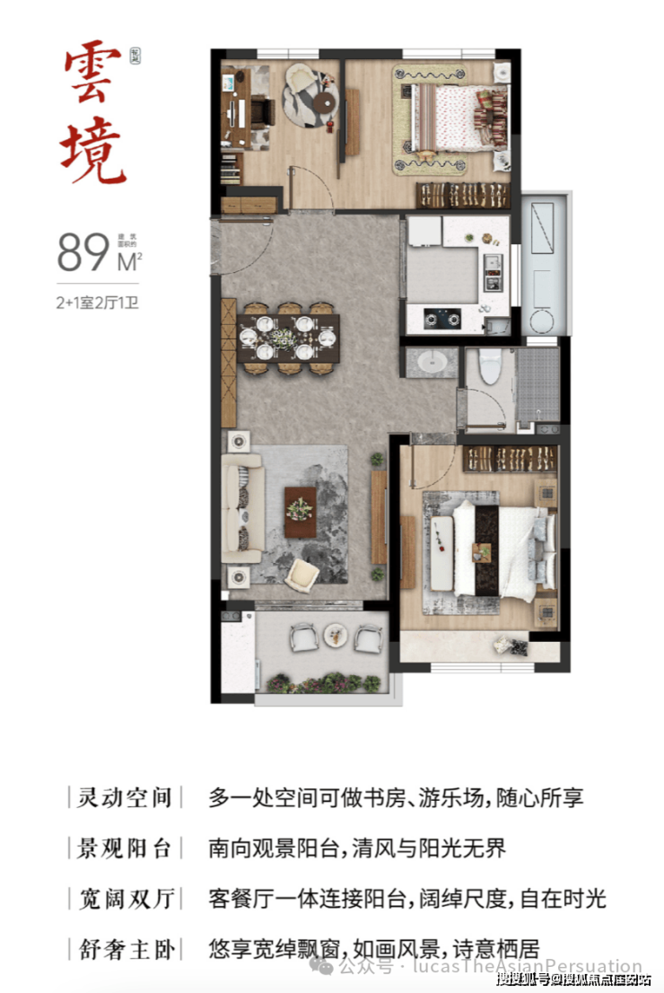 社区总建面约9.6万㎡,容积率2.28,由7栋小高层,3栋花园洋房组成。其中,高层打造建面约73-89㎡墅质2-3房。全屋通透采光,270°墅区景观,诠释低密品质舒居。