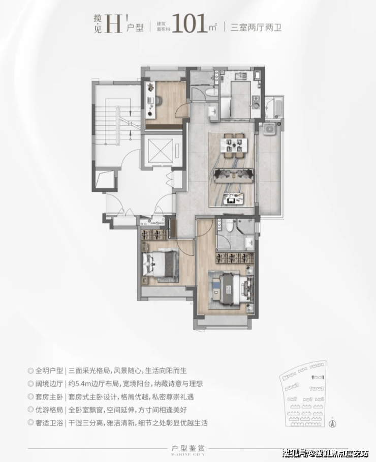 全明户型| 三面采光格局,阳光充沛,风景随心,视野宽广怡人