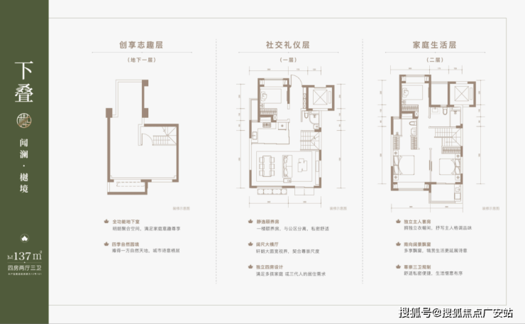 建面约137㎡下叠,四房两厅三卫全能格局,非常适合二娃家庭以及三代同堂。