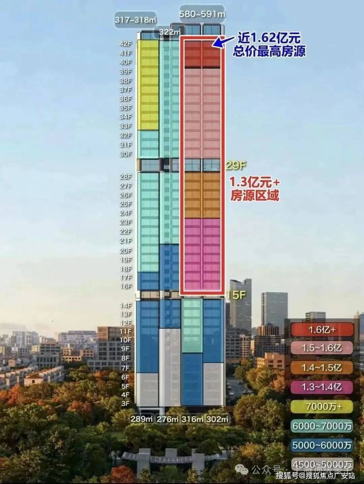 高区600平户型,单价约22w-27w,总价约1.3-1.7亿。(已售罄)