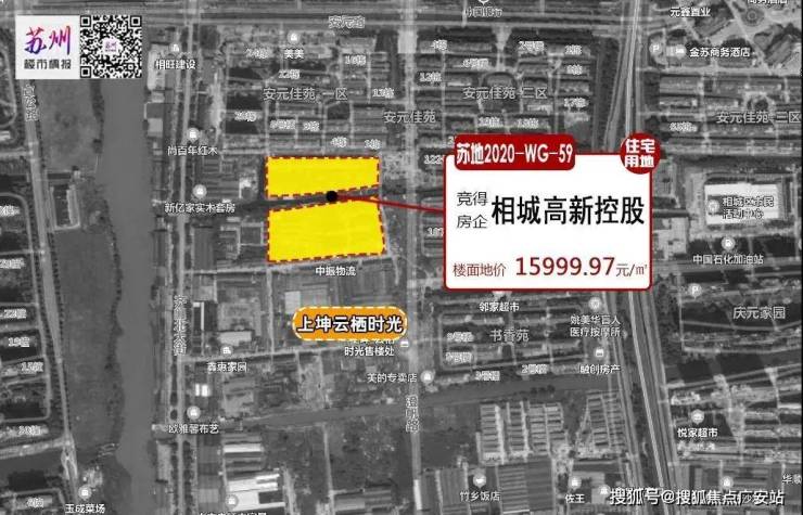苏州润元经济发展有限公司于2020年12月11日以底价227153万元竞得,成交楼面价约1.6万/㎡。