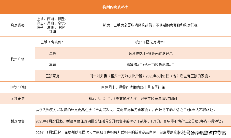 3、2024年10月9日新政后,杭州不再执行限售政策,但是前期已经明确要进行限售的项目,今后仍然执行限售。