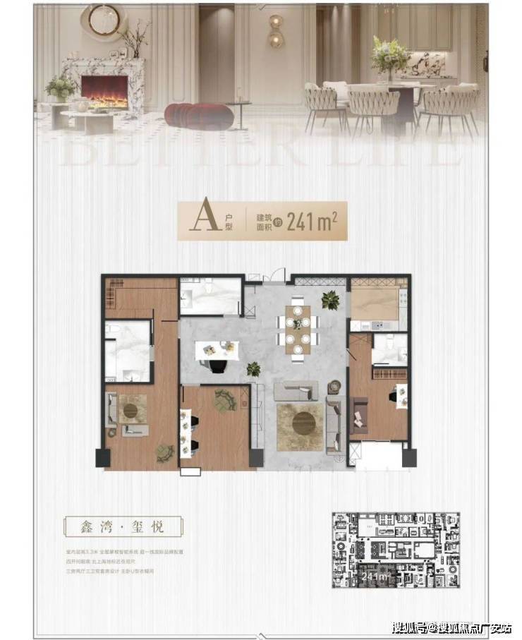 面积段:主力户型为建面241㎡(3房3卫)和486㎡(5房6卫),部分户型配备300㎡私享露台3