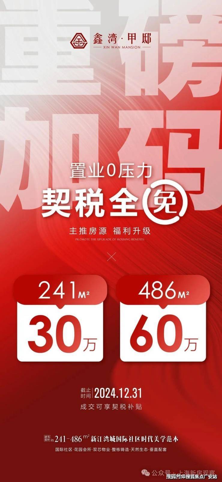 新江湾城【鑫湾甲邸】建面约240-480㎡ 奢阔行政公馆 !总价1150万起!