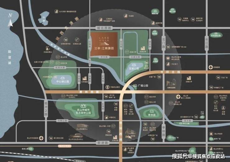 中心湖公园、昆山森林公园、玉湖公园等生态绿境在侧,氧护生活;