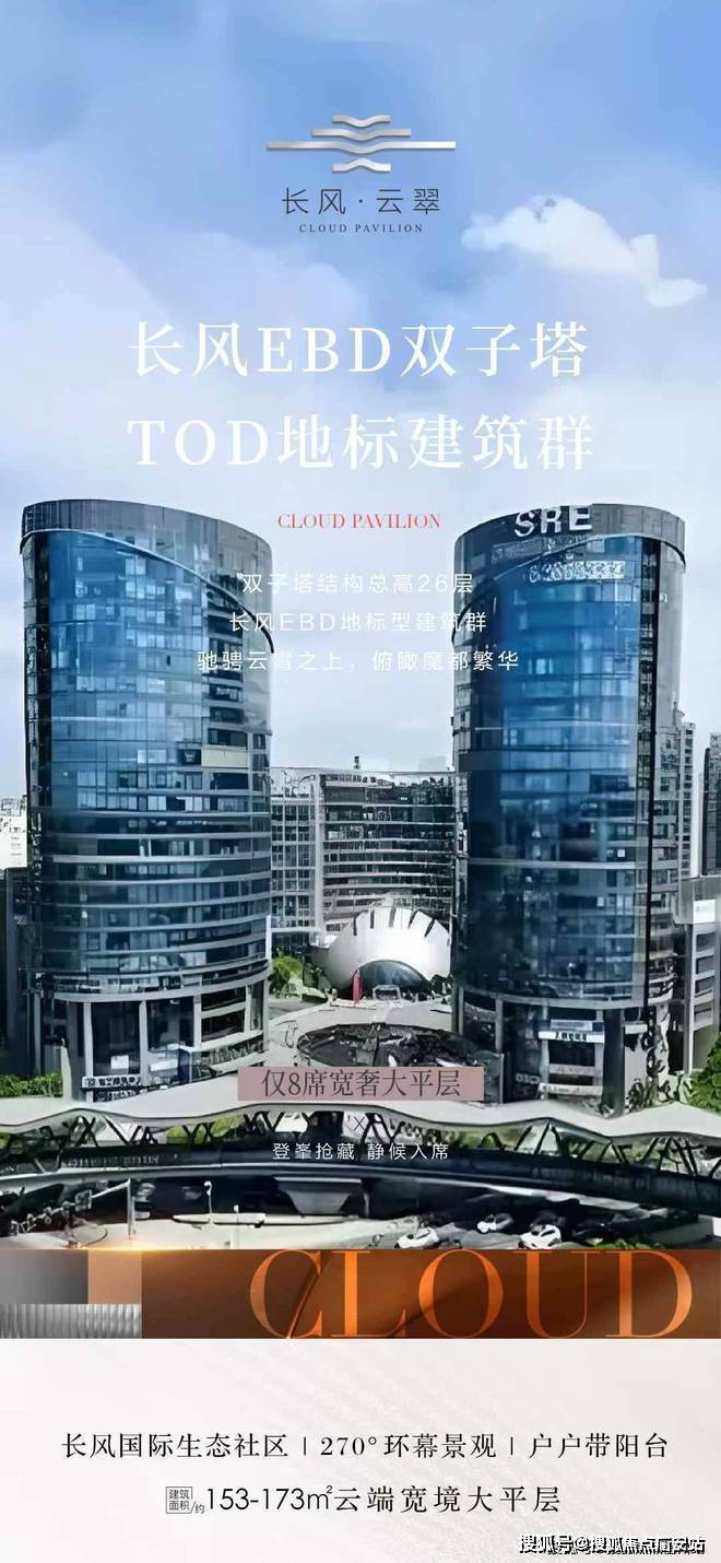 【长风·云翠】长风国际生态区建面约153-173平云端宽境大平层270度环幕天际景观户户送独立储藏室+阳台650万起