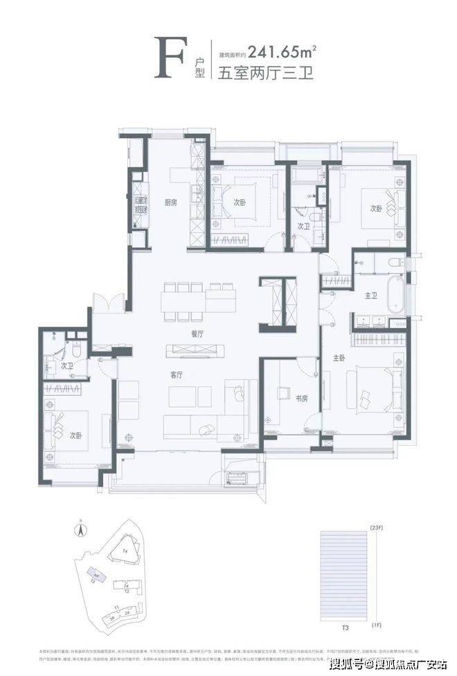 建面约241㎡5房2厅3卫户型,一步到位改善级豪华住宅,四代同堂无压力,2400-2700万级精品巨献!