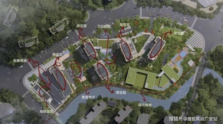 金茂·璞元社区整体抬高1.3-1.4米,下沉庭院景观高差近7米。把峡湾、密林、溪涧、山丘都纳入其中!