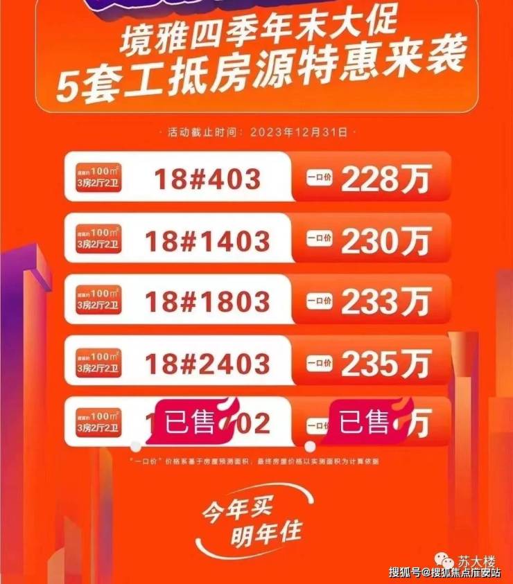 大境风华作为碧桂园大境系列,产品还是不错的,本次推出5套特价房建筑面积约100㎡3房2卫,一口价228万起,活动截止时间2023.12.31。