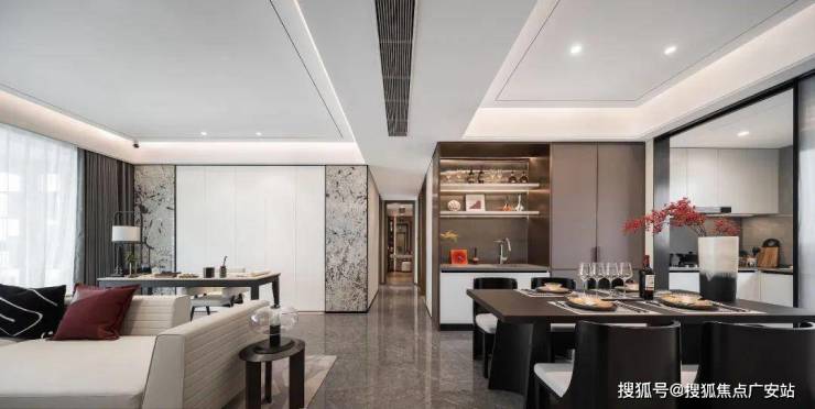 超阔尺度客厅可做多功能扩展空间,也可作为临时客房。整个南向面宽更是做到了21.2米。同样的也是独享私家电梯厅入户,独立玄关,定制化设计创新中西双厨设计,厨房与家政空间联动,入户后整个空间仪式感与尊贵感更强了,层高更是做到了3.2米。