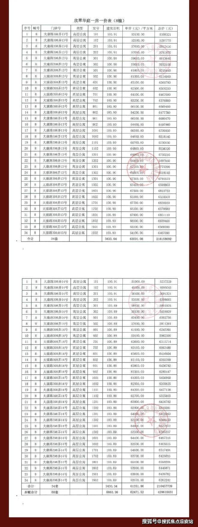 大华公园柏翠项目一房一价表▼