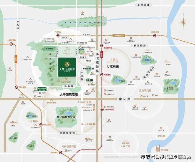 上海宝山大华公园柏翠静安400米、中环之上、大宁下一站