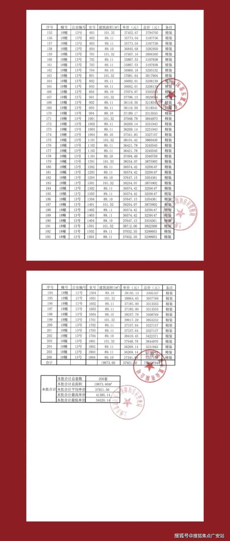 267、均价:单元或整个项目总销售额除以可销售面积得出的价格。