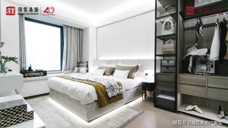 深业·深安上居规划有12幢现代美学风格的建筑,玻璃幕墙搭配米白色和深灰色材质涂装,简约线条分割完善挺拔向上的平面美学。