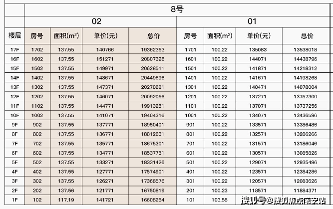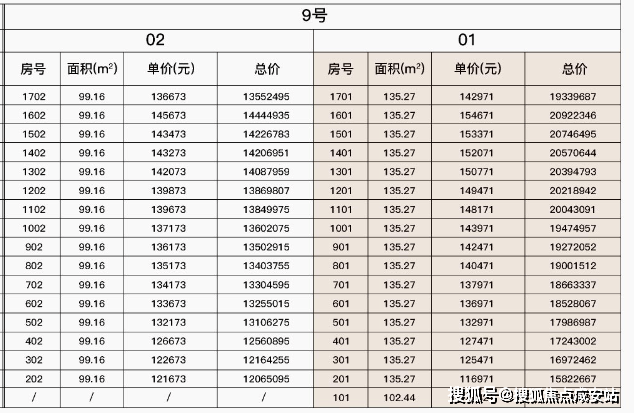 最新一房一价表: