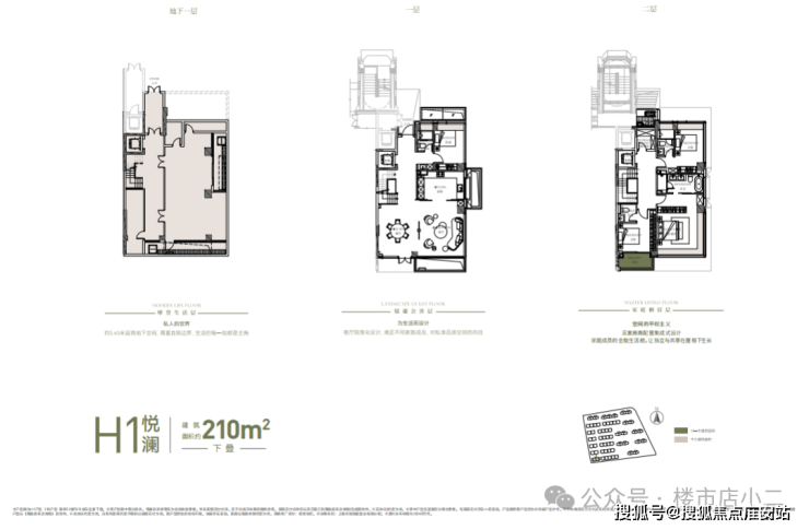 建面约182㎡下叠:庭院+地下室(含夹层)+阳台的整体附赠空间约210㎡;