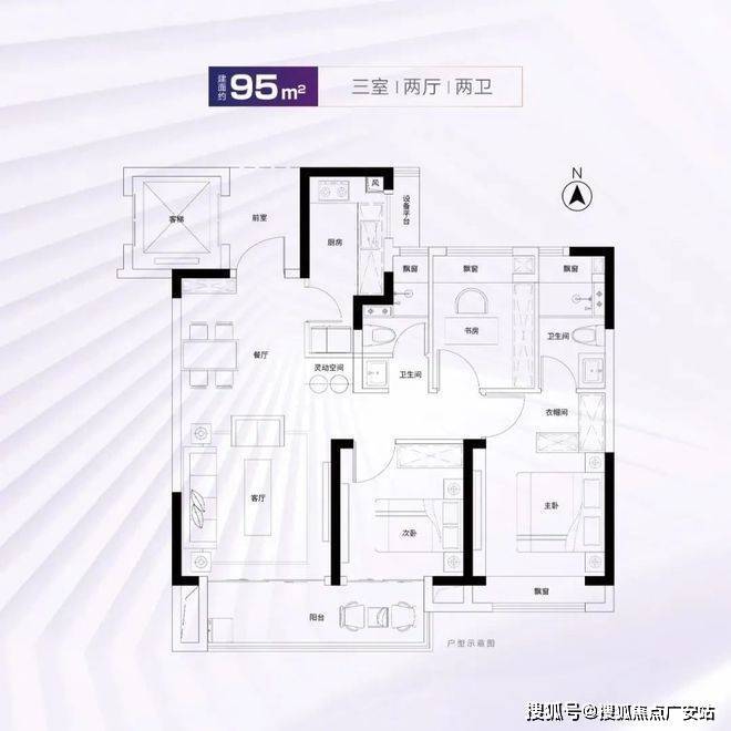 建面约95m²3房2厅2卫