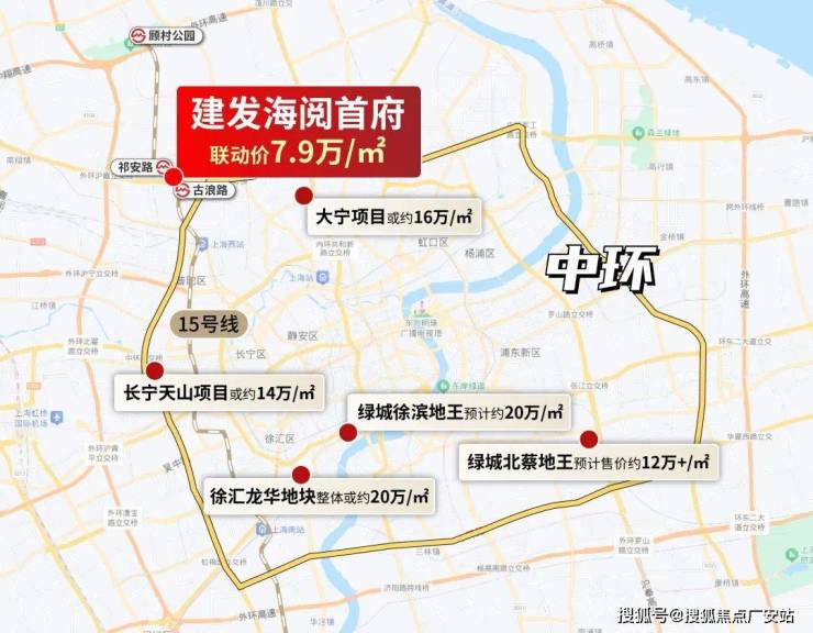 相比之下,联动价仅约7.9万/㎡的桃浦15号线地铁房——建发海阅首府,俨然是整个中环肉眼可见的价格洼地!