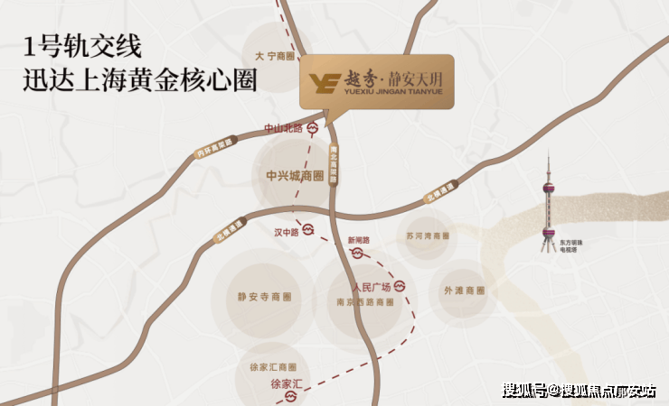 静安天玥距1号线中山北路站直线距离仅50M(数据来源于百度测距),4站人民广场,4站人民广场、5站新天地板块、6站陕西南路,还能与4号线、2号线等14条地铁线路换乘,高效通达南京西路、静安寺、外滩、陆家嘴等上海黄金商圈。除此之外, 南北高架、内环高架、北横通道“两横一纵”的高速配置,通达市区各大CBD、商圈,放眼全市都相当出众。