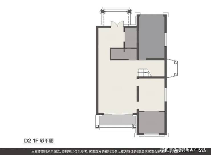 D1型双拼建筑面积:277.08-302.75平米(除6号279.46平米、7号277.08平米、8号281.7平米外,其余皆附带车库);