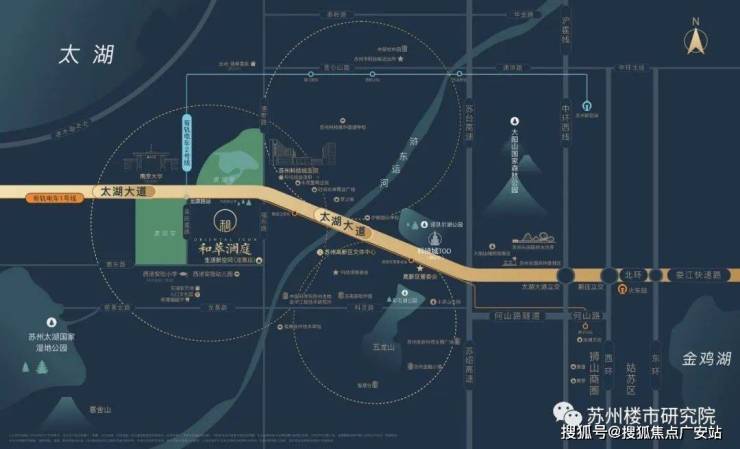 和萃澜庭位于苏州高新区科技城核心位置,向东1km为科技城文体中心、2km为科技城核心区TOD项目,向西1.5km为南大苏州校区。