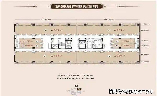 4号楼写字楼:约53、309、617㎡(层高4.49米)单价:1.2-1.4万左右