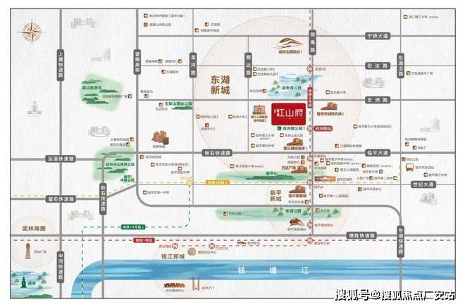荷语江山府正位于东湖新城核心,而且临平区自南向北,从迎宾路到荷禹路,两边遍布城市高能级资源,荷语江山府正是这条城市中轴线上的宝藏宅地。