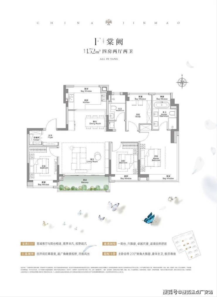 全景舱艺境美宅,标准层约3.1米层高、270度全景飘窗、LDKB一体化、南向跑道阳台、超12米南向全屏开间,无限视野尽收眼底,还有超金喜的满配精装,全上海只有央企金茂才能做得到。