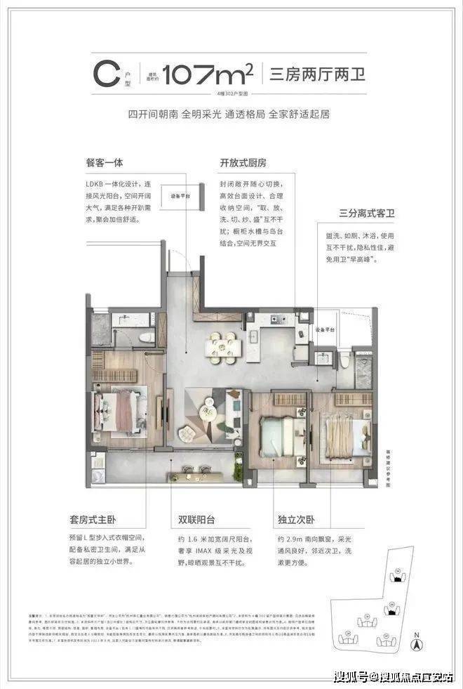 如果要评选杭州2023年度最佳户型,我一定投它一票,甚至不夸张的说,所有新项目的三房户型,都应该按照这个模板去做。