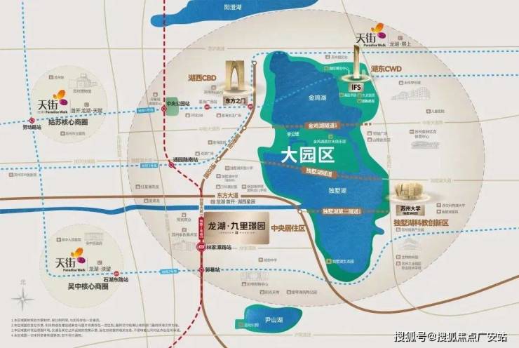 【双湖大城·黄金置业板块】《独墅湖西开放创新协同发展示范区》文件正式确认独墅湖西为园区共同体,标志着双湖大城正式崛起;以双湖为中央生态核,“现代大道—通达路—纵向7号线—独墅湖第二隧道—星湖街”构建环形发展轴,双湖四角贯通,形成黄金闭环。