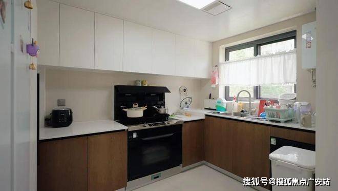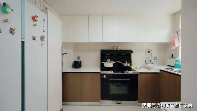 厨房的配色采用“时空三明治”策略——奶白悬浮于上,栗棕沉淀于下,灰白托底其间,通过色彩心理学与实用主义达成精妙平衡。