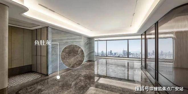 铺陈客厅的灰调石材,以“铜流金镶”工艺进行围合,两种不同灰度的天然奢石完美融合,细腻雅致的鱼肚灰、星河般璀璨的星耀灰,成为客厅一道不可多得的艺术风景。