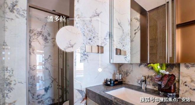 卫浴墙面上,潘多拉岩板流动交织的纹理,为空间注入了一曲奢华的交响,以巴西顶级奢石潘多拉为灵感来源,其独特的“岩石感”纹理,将空间的浪漫优雅与艺术气息完美演绎。