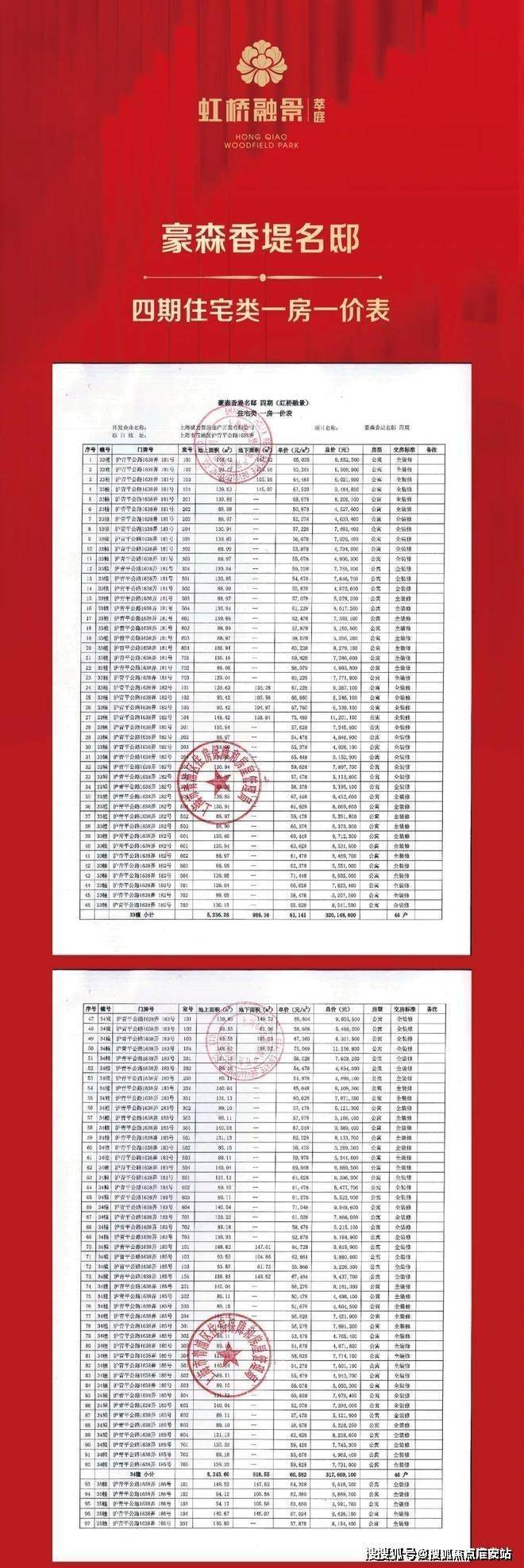 项目一房一价表