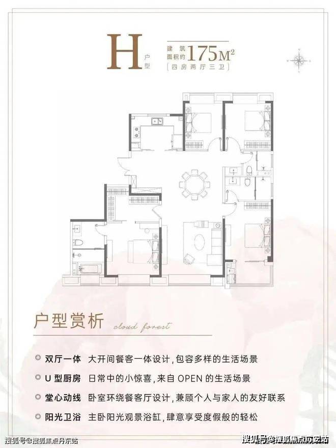 建面约175㎡4房3卫,几乎是上海改善的终点户型。