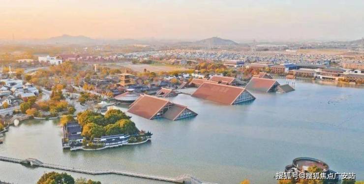 比如,富林美学馆长度超140米的平檐建筑,取自古代画作中的“平远”风格,创造出区域内最具江南意境的宽屏门楣。建筑两侧花繁叶茂,是在复现《富林春晓》这首诗中“花落风檐多”的意境。