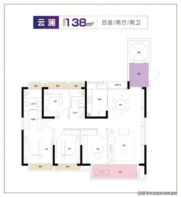 此外,奉发云境PRO还有一个更加进阶的品质改善户型:建面约138㎡,四室两厅两卫。尺度更大的空间,无疑让设计更加优秀。南向约13.4m四开间,阔绰程度令人惊艳;主卧步入式衣帽间、独立浴室,给予主人格调拉满的奢华体验。