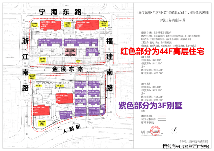 其实早在去年6月9日,上海市资源与规划管理局就公布了黄浦区广场社区C010102单元064-01、065-01地块项目建设工程设计方案;