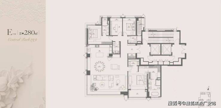 户型:128㎡三房、210㎡四房、280-410㎡大平层