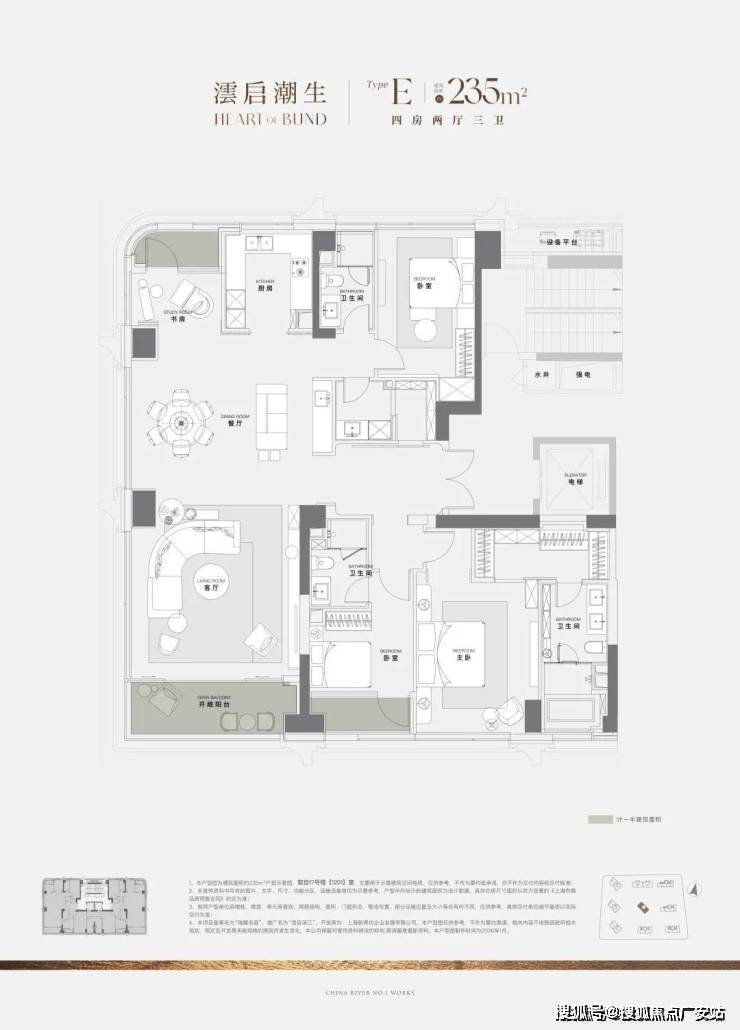过去10年上海一线滨江住宅,大户型是绝对主流,120㎡级3房产品从未出现。澐启滨江是因2021年后滩九宫格有中小套型指标要求,得以推出120㎡级产品。